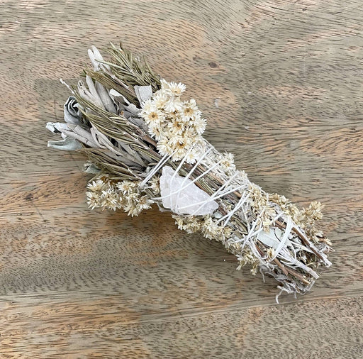 View full detailsAndaluca - 6" Rosemary & Sage Floral Smudge Wand with Quartz Crystal
