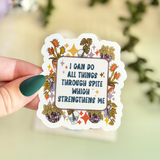 Add a splash of color and a hint of inappropriate humor to your daily life with our 'Spite Strengthens Me' sticker. HandCrofted ensures a unique to...