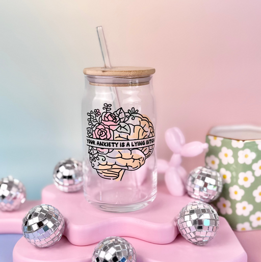 Dealing with anxiety? Don't take it too seriously with our Your Anxiety Is A Lying Bitch Glass Can. This quirky and humorous product is sure to bri...