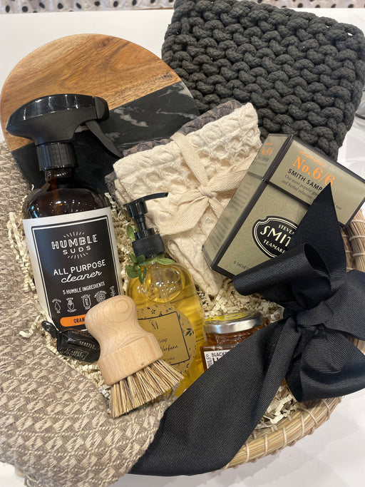 -Blackberry Honey -All Purpose Cleaner -Mayhem Dish Soap -The earthling Co. Scrub -Pot Holder -Smith Tea Sampler -Dish Towels -Cutting Board -Thr...