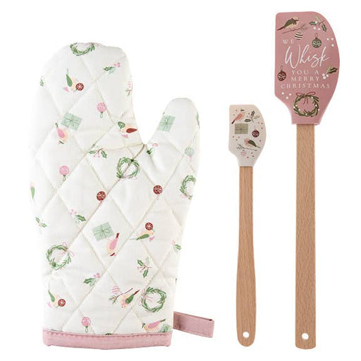 Your new best friend in the kitchen, this holiday-themed oven mitt and spatula set will help you whip up something delicious in holiday spirit. Mad...