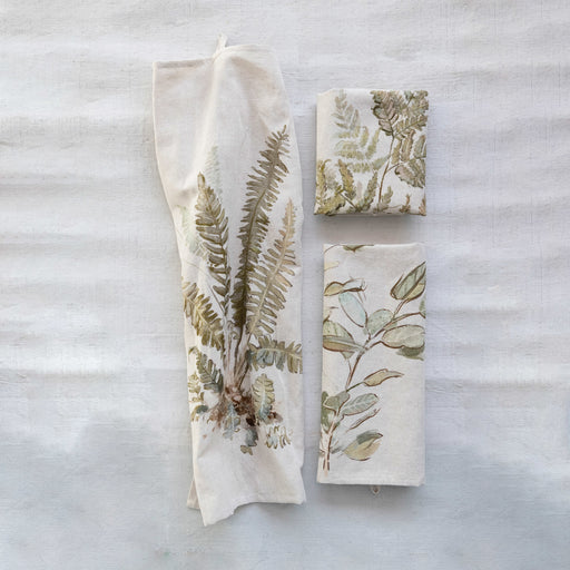 Creative Co op Cotton & Linen Printed Tea Towel w/ Botanical Image & Loop