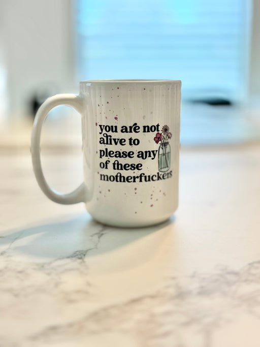 Design on Both Sides of Mug • Cream With Black Lettering • Speckled Design with Natural Bottom Details • Each piece is hand-crafted, making the ch...