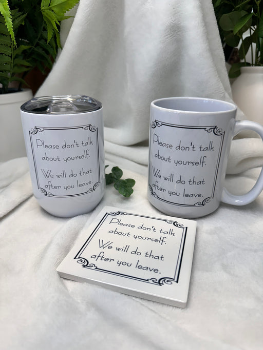 Indulge in some witty humor with our MMS Mug: Please Don't Talk About Yourself! This funny, snarky mug makes a great gift and is sure to put a smil...