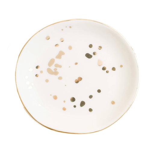 Organize jewelry in style with our White Gold Speckled Jewelry Dish. This beautiful white trinket tray is the perfect addition to any room. The gol...