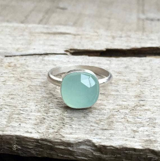 View full detailsGilded Bug Jewelry - Romantic Cushion Cut Aqua Ocean Blue Chalcedony Boho Ring in Sterling Silver
