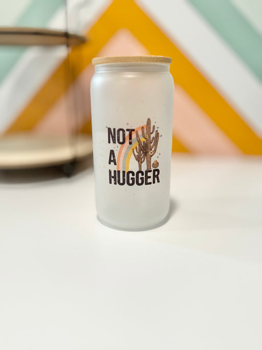 HandCrofted Not A Hugger Frosted Glass Can