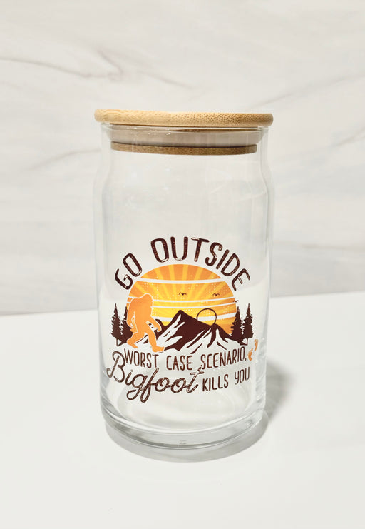 HandCrofted DISCONTINUED Go Outside Bigfoot Clear Glass Can