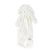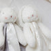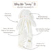 Meet Simple Bun Bun Bunny, a timeless take on our beloved Buddy Blanket – now with a simpler, more streamlined design. Bun Bun features a white plush bunny head and floppy arms, with baby -safe embroidered features for extra snuggles and sweet dreams. With soft white velour blanket body is trimmed with silky satin, perfect for soothing little hands and encouraging tactile development. A gentle first friend for baby’s earliest memories.