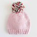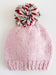 Our Merry Hat is hand-knit, featuring a pink base and multicolored pom. This hat adds cheerful flare to your little one's winter wardrobe. Match with our Merry Sweater. - Designed in Salt Lake City. - Crafted with care using 100% hand-knit Acrylic. - Hand wash and lay flat to dry.