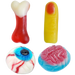 Talk about morbidly sweet treats! Missing Body Part Gummi Candies look great in a candy dish at Halloween themed parties and the gummi bones, fingers, brains, and eyes are a spooktacular snack to munch on during a Halloween movie night. Bag contains approximately 16 pieces Fat Free Gluten Free