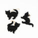 A trio of purr-fectly spooky felt black cat ornaments, each with its own quirky charm, ready to prowl your Halloween tree! Sold as a set of 6 assorted. The cats range betwen 3 and 4" from top to tail, and 4" high depending on their pose.